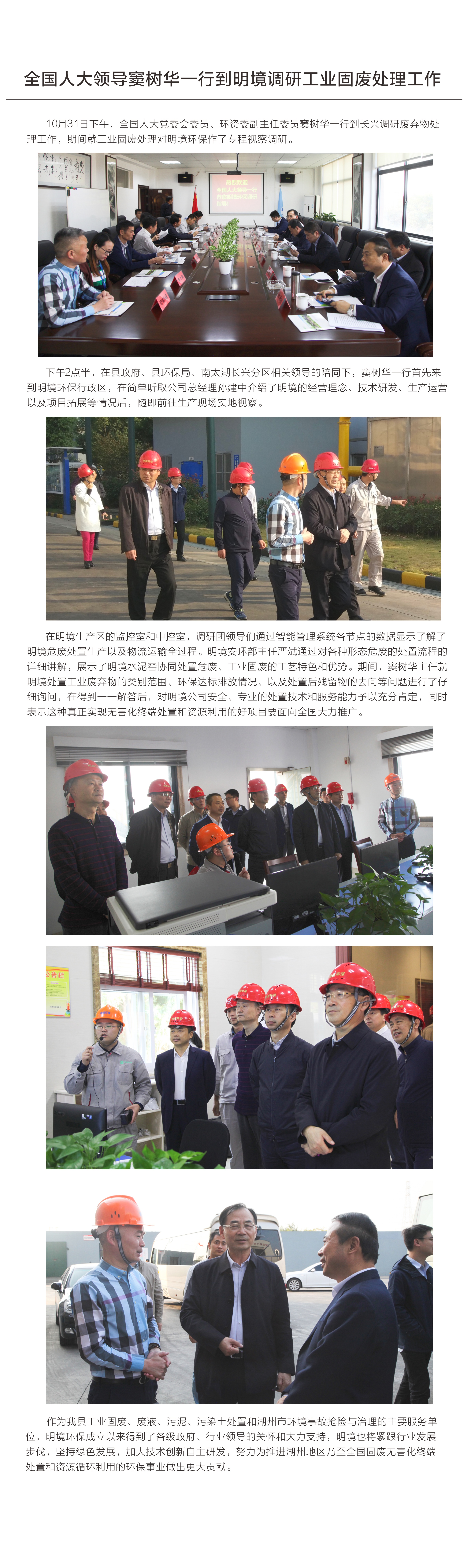 全國(guó)人大領(lǐng)導(dǎo)竇樹(shù)華一行到明境調(diào)研工業(yè)固廢處理工作