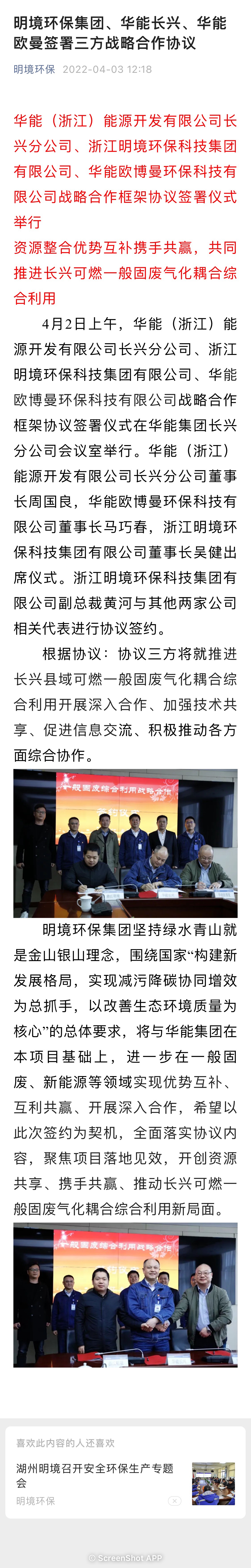 明境環(huán)保集團(tuán)、華能長(zhǎng)興、華能歐博曼簽署三方戰(zhàn)略合作協(xié)議
