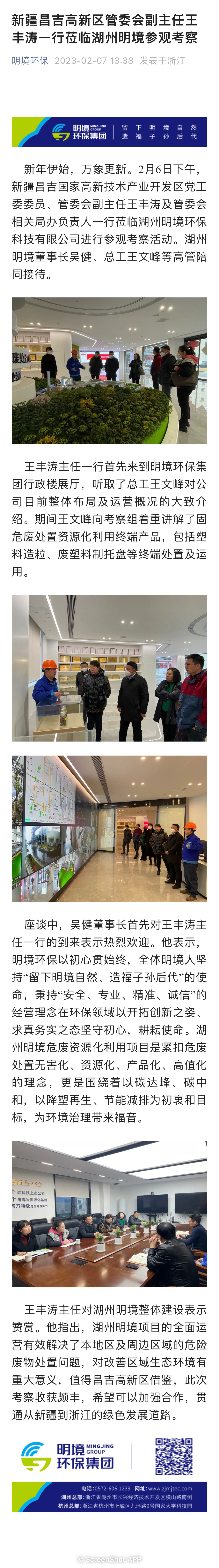 昌吉高新區(qū)管委會副主任王豐濤一行蒞臨湖州明境參觀考察