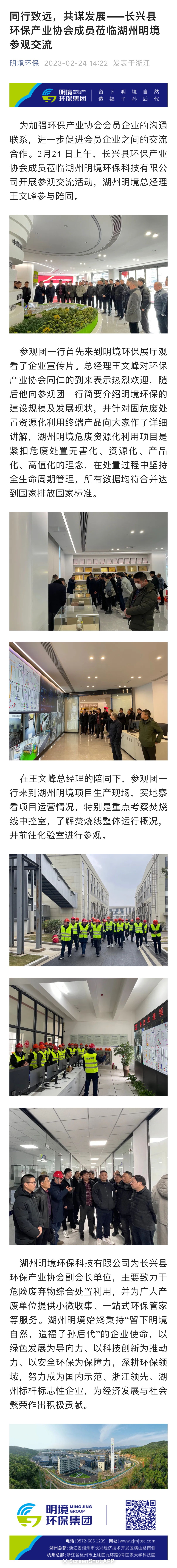 長興縣環(huán)保產業(yè)協(xié)會成員蒞臨湖州明境參觀交流