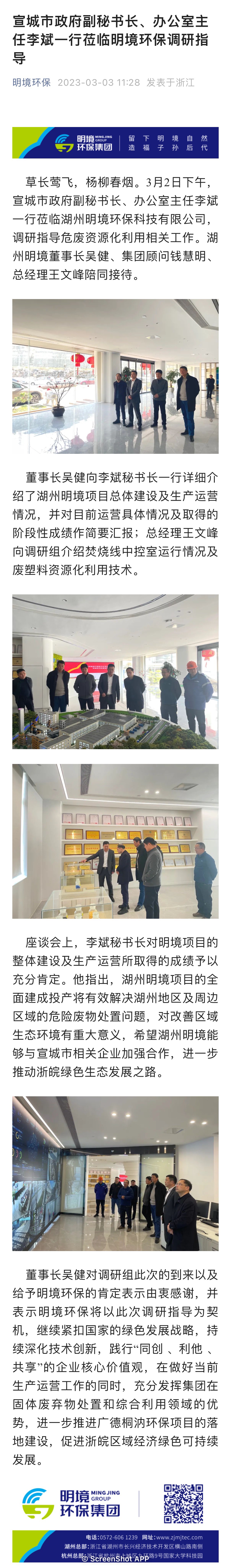 宣城市政府副秘書長、辦公室主任李斌一行蒞臨明境環(huán)保調(diào)研指導(dǎo)