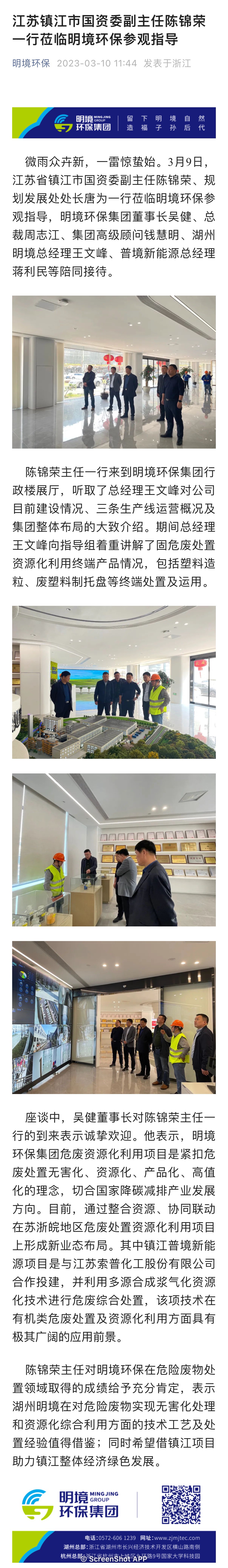 江蘇鎮(zhèn)江市國(guó)資委副主任陳錦榮一行蒞臨明境環(huán)保參觀指導(dǎo)